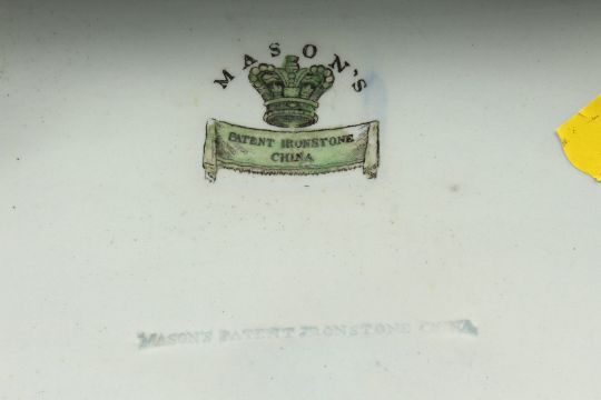 A MASONS IRONSTONE GREYISH JAPAN PATTERN TUREEN, COVER AND STAND.