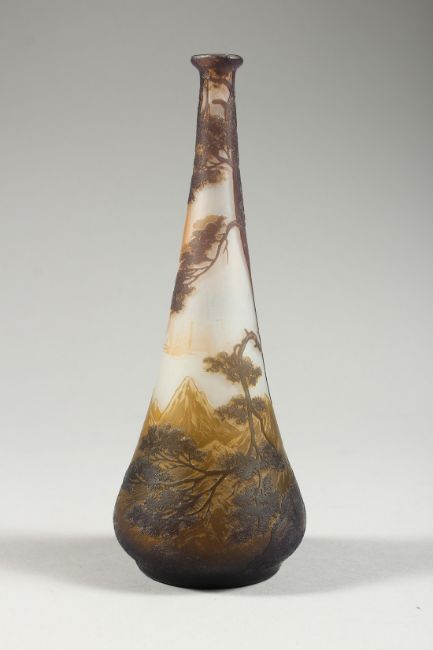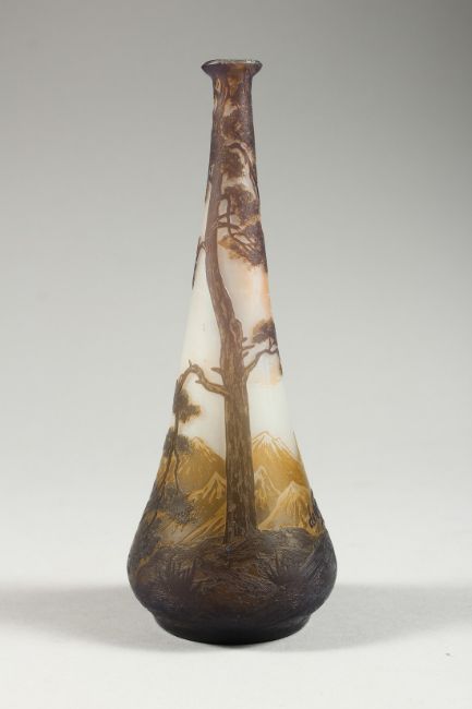 A GOOD DE VEZ CAMEO GLASS VASE, landscape trees and mountains, cameo signature 'de vez' .
