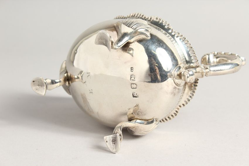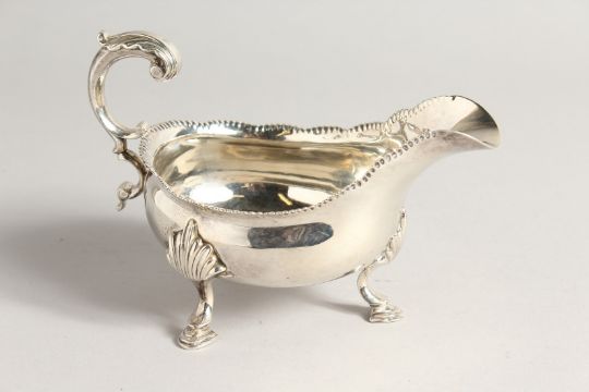 A GEORGE III SILVER SAUCEBOAT on three pad feet.