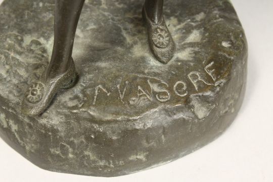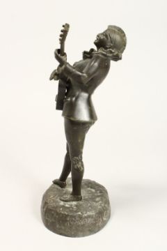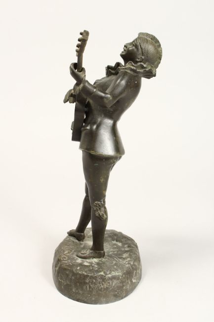 A GOOD STANDING BRONZE OF A PIEROT playing a guitar.