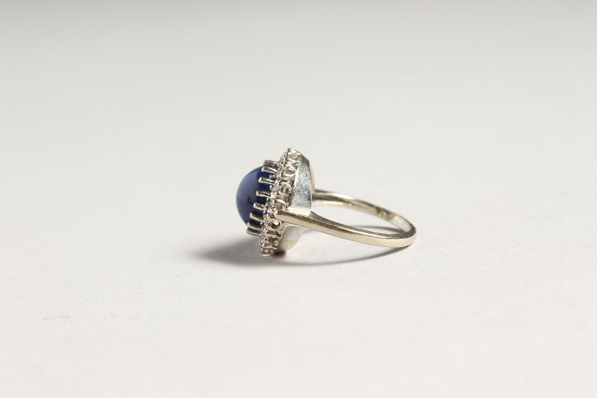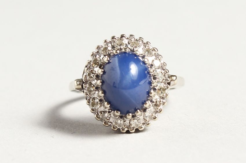 A GOLD CARBOUCHON SAPPHIRE AND DIAMOND RING