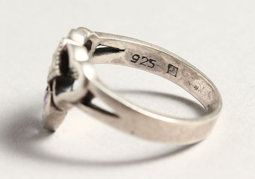 A SILVER CLADDAGH RING