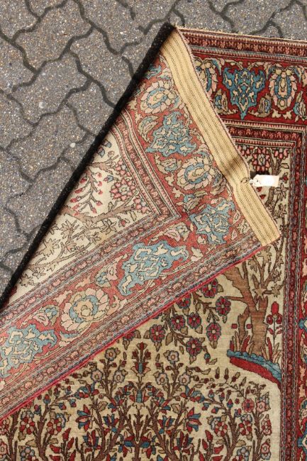 AN EARLY 20TH CENTURY ISFAHAN "TREE OF LIFE" RUG, beige ground, with a red ground floral border.