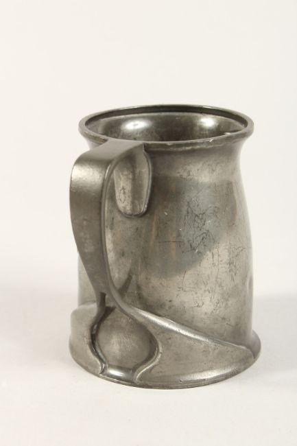 A TUDRIC ARCHIBALD KNOX PEWTER TANKARD with an oval of a golfer