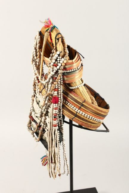 A PERUVIAN HEADRESS AND STAND