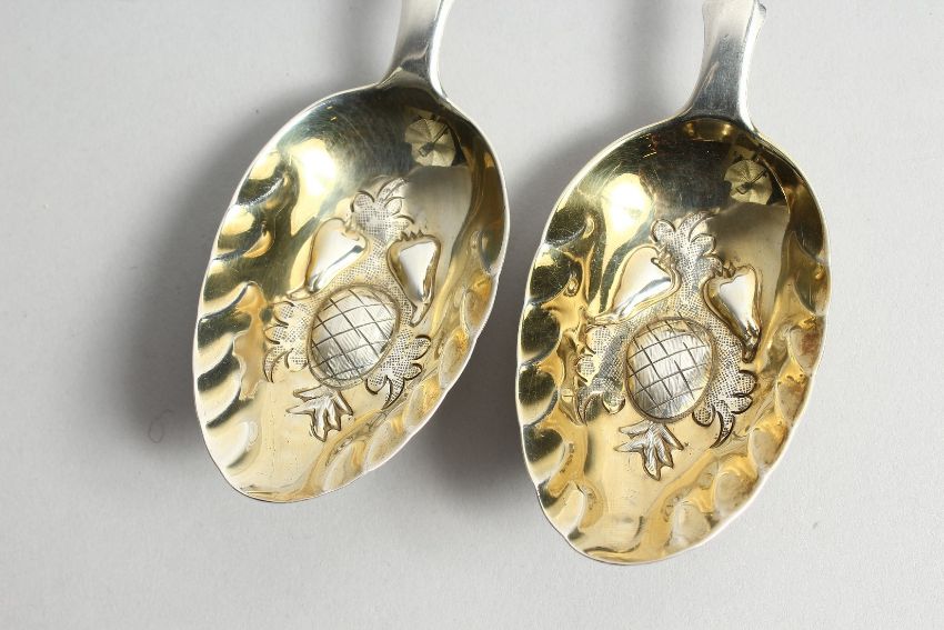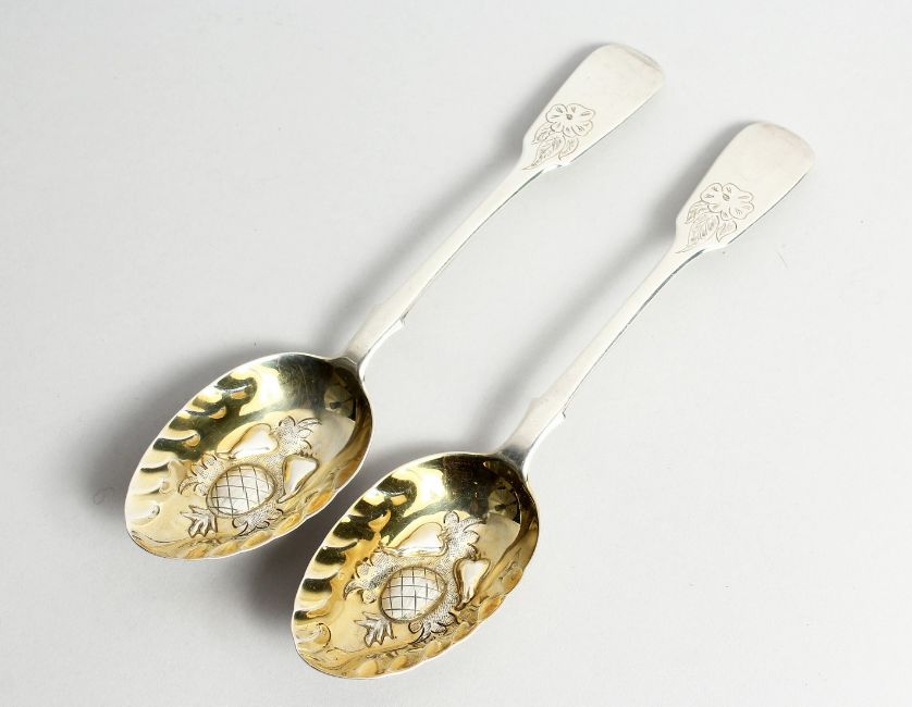A PAIR OF SCOTTISH SILVER FIDDLE PATTERN BERRY SPOONS.