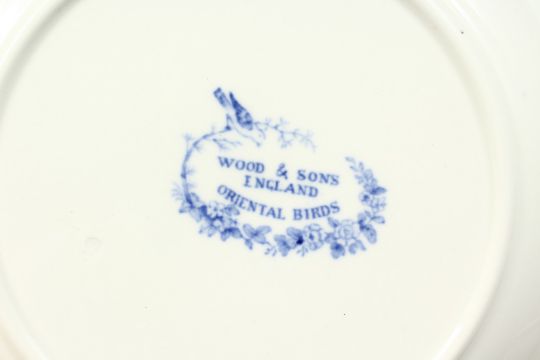 A WOOD AND CO. ORIENTAL BIRD PATTERN CIRCULAR TUREEN, COVER AND STAND.