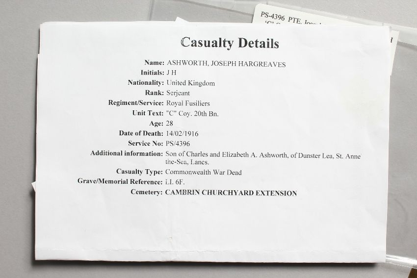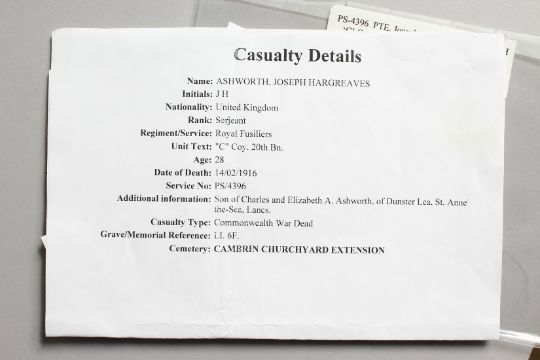 THE MEDALS OF PTE. JOSEPH HARGREAVE ASHWORTH. C. COY.