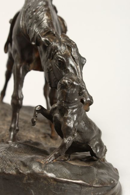 A GROUP CAST IRON GROUP, HORSE AND DOG
