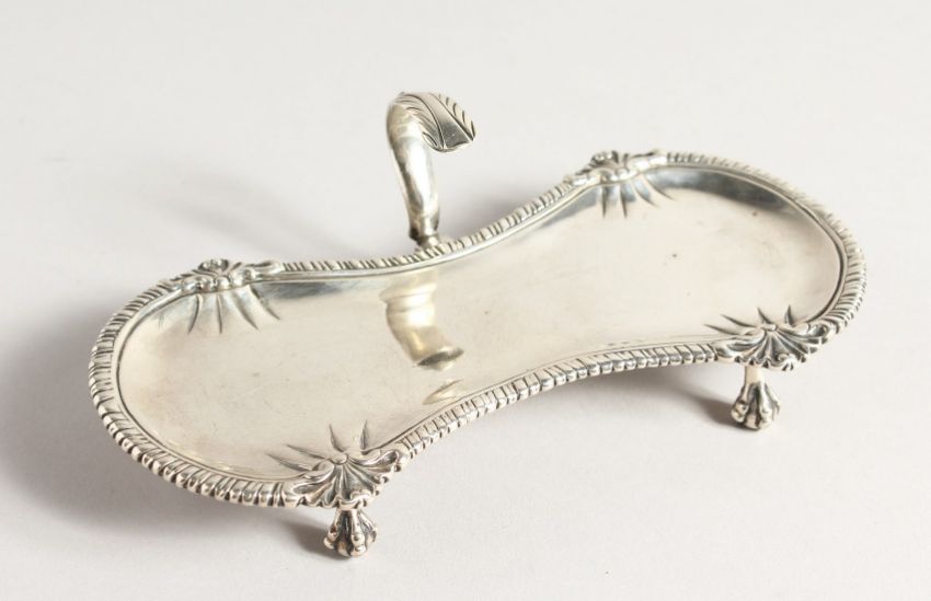 A GEORGE III SILVER SUPERB SNUFFER TRAY with gadrooned edge and shell mounts on four claw feet.