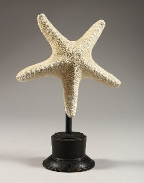 A STARFISH SPECIMAN on a plinth.
