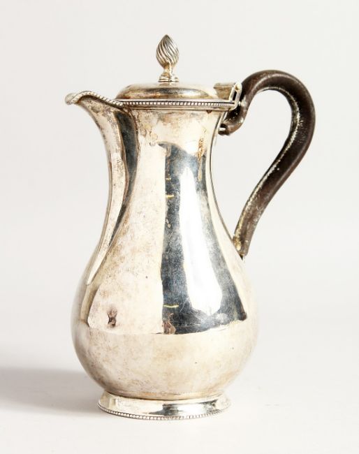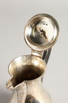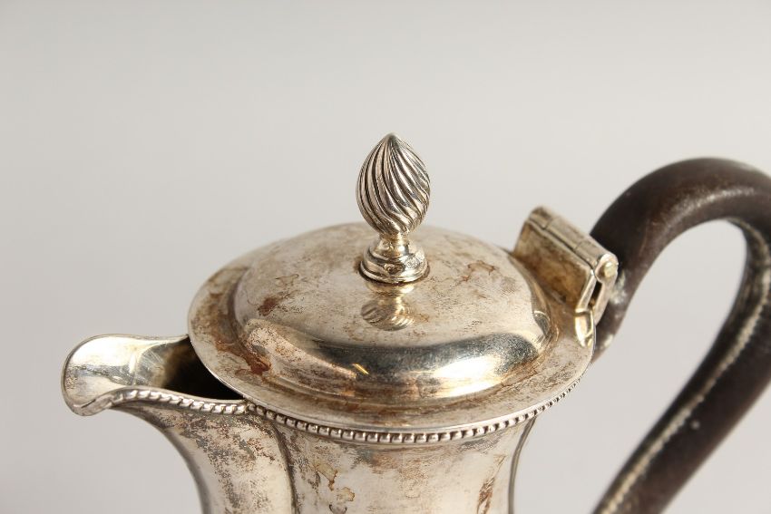 A VICTORIAN SILVER HOT WATER JUG with leather handle.