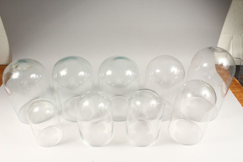 A COLLECTION OF 9 GLASS DOMES.