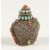 AN ISLAMIC FILIGREE SILVER SCENT BOTTLE with coral and turquoise stones.