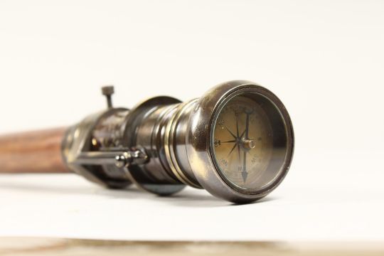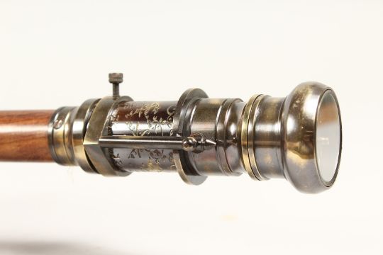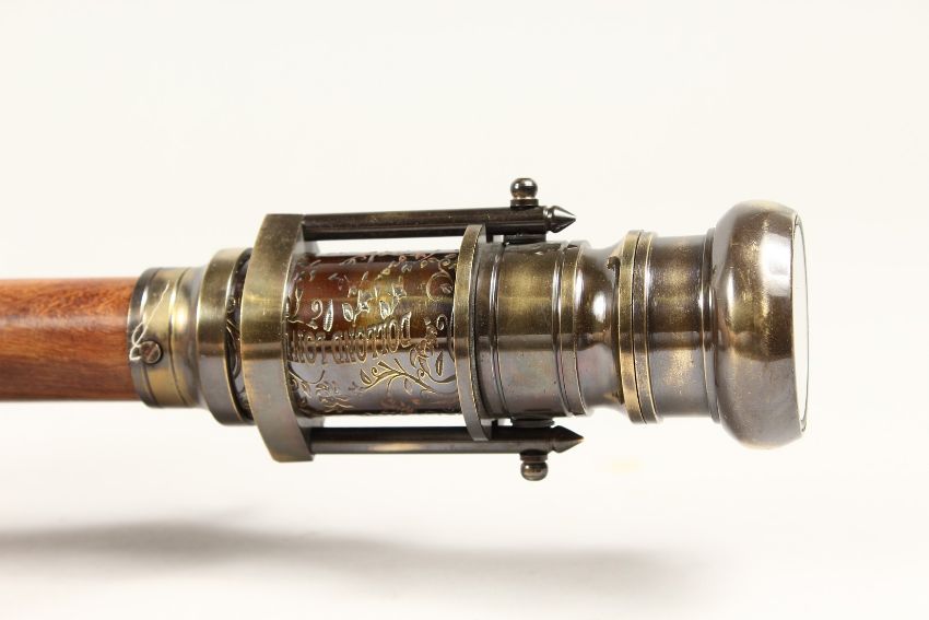 A WALKING STICK with compass and telescope
