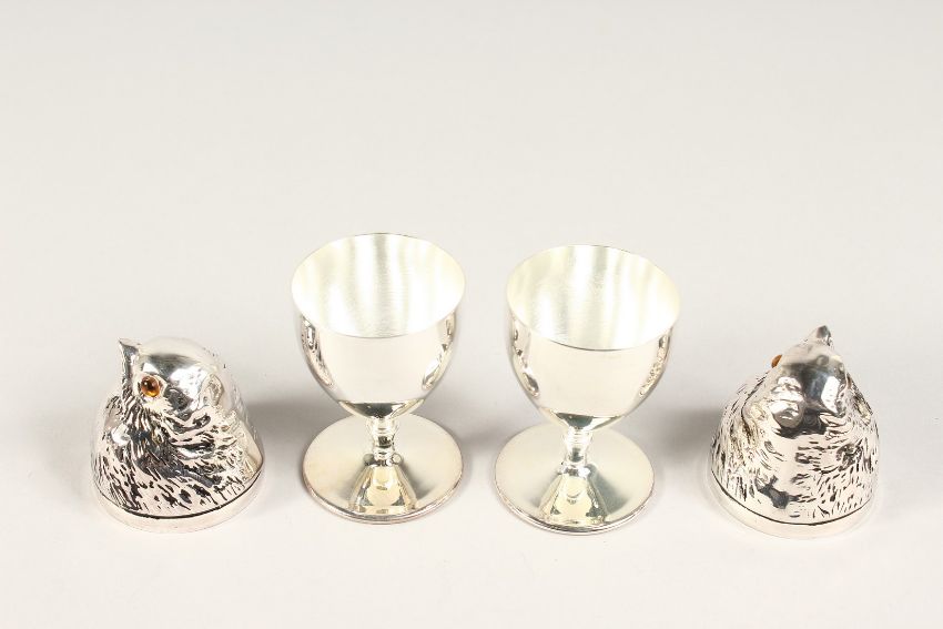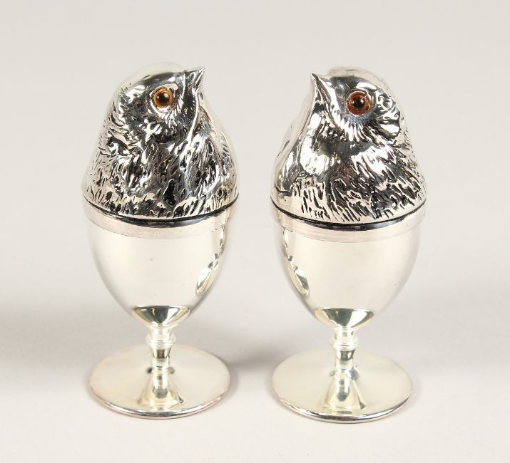A PAIR OF SILVER PLATE CHICK EGG CUFF LINKS