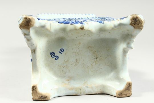 A 19TH CENTURY DUTCH BLUE AND WHITE MINIATURE PORCELAIN LONGCASE CLOCK, the movement by Charles Welles, Hampton Wick.