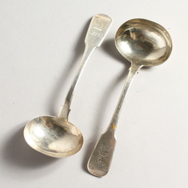 A PAIR OF SILVER FIDDLE PATTERN SAUCE LADLES, Chester 1838 Maker John Sutters