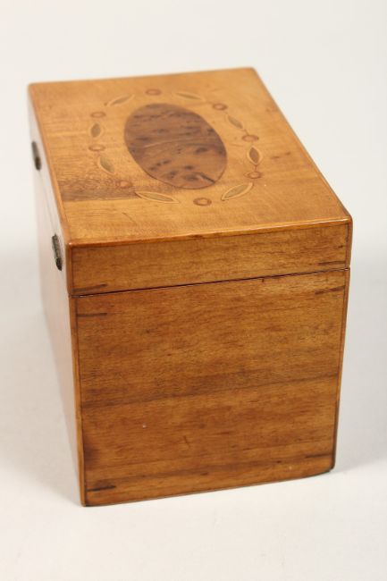 A SMALL GEORGE III RECTANGULAR TEA CADDY with inset ovals.