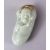 A CHINESE CARVED JADE FIGURE / PENDANT OF AN IMMORTAL, holding an object and a fan above his head, 9cm
