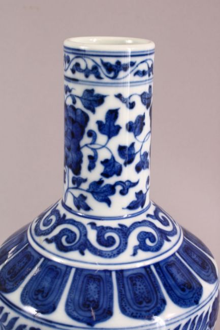 A CHINESE BLUE AND WHITE PORCELAIN FLORAL PANEL VASE, 34cm