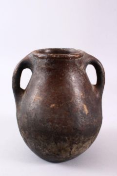 A 10TH CENTURY IRANIAN POTTERY TWIN HANDLE JUG, 22cm high.