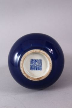 A CHINESE POWDER BLUE PORCELAIN VASE, The base bearing a qianlong mark, 16cm high.