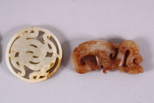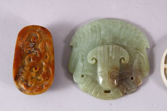 FOUR VARIOUS JADE AND HARDSTONE PIECES.
