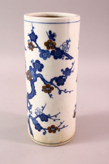 A CHINESE BLUE & WHITE PORCELAIN PRUNUS VASE, 25CM