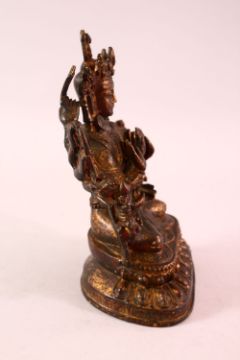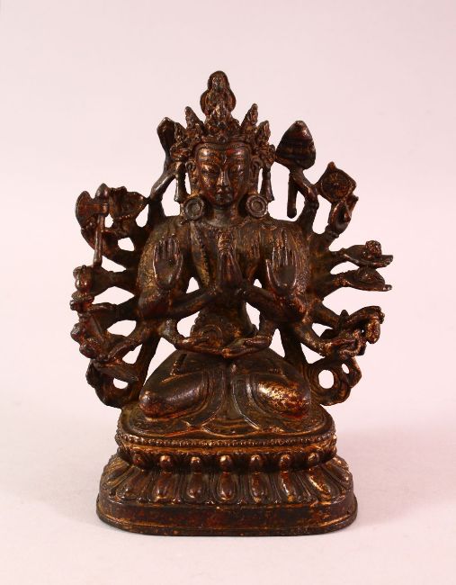 A CHINESE GILT BRONZE FIGURE OF A MULTI ARM DEITY, 18cm