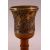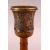 A GOOD ISLAMIC GOLD & SILVER INLAID HUQQA BASE, with wooden top, with gold and silver inlays depicting figures and animals, 18cm