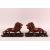 A PAIR OF CHINESE CARVED HARDWOOD LIONS & STANDS, each with inlaid eyes and teeth, 29cm