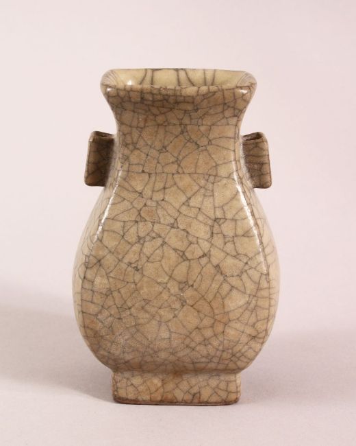 A CHINESE GE WARE TWIN HANDLE ZUN VASE, 15cm high.