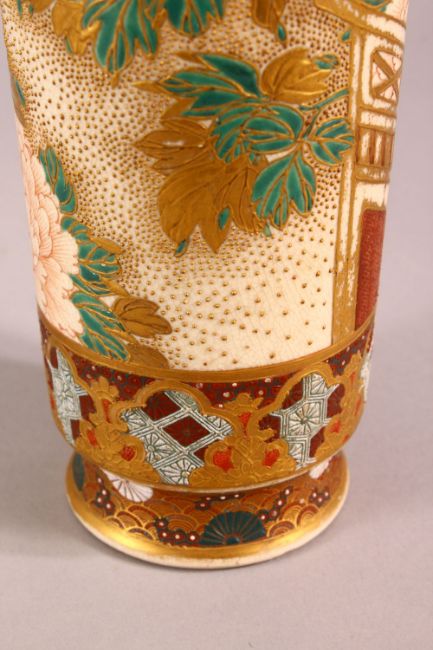 A JAPANESE MEIJI PERIOD SATSUMA VASE, decorated with a semi raised decoration depicting chrysanthemum and birds, the base with an impressed seal to foot rim, 37cm
