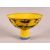 A CHINESE YELLOW GROUND PORCELAIN STEM CUP, decorated with cranes in flight, the interior of the foot with a mark, 15cm diameter.