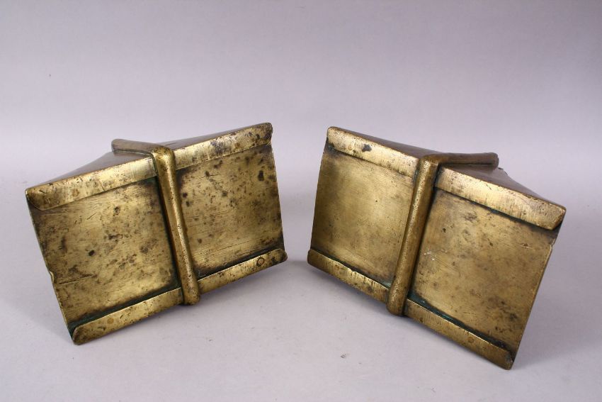 A GOOD PAIR OF 19TH CENTURY BRASS / BRONZE HORSE STIRRUP'S, 17cm high x 12cm wide.