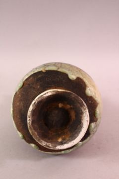 A 14TH CENTURY ISLAMIC RAQQA SYRIA POTTER EWER, drip glaze with brown decoration, 21cm