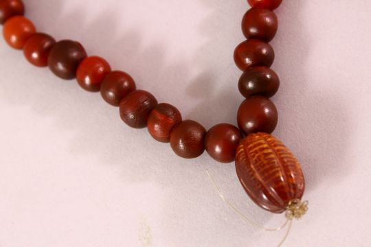 A RHINO HORN BEAD NECKLACE, beads approx 10mm diameter, weight 65g.