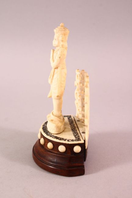 A 19TH CENTURY INDIAN CARVED IVORY VIZAGAPATUM FIGURE OF HANUMAN, 11cm high.