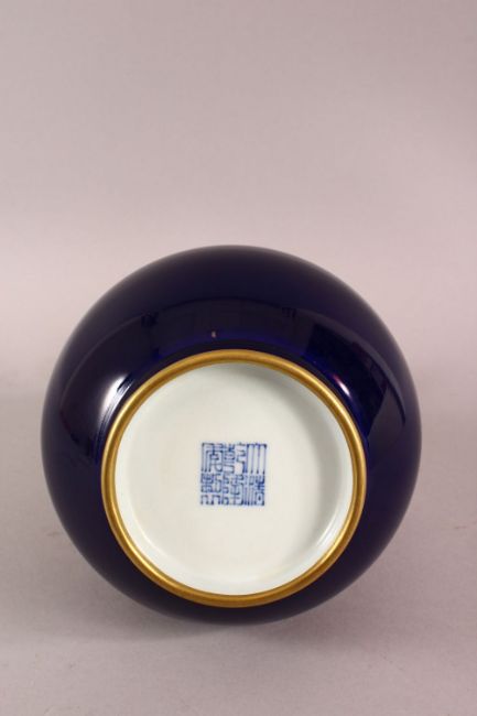A CHINESE POWDER BLUE PORCELAIN VASE, The base with a six character mark, 24cm