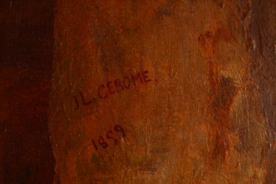 A TURKISH COPY OF A MASTER PAINTING BY JL EROME, orientalist subject, framed, 55cm x 43cm