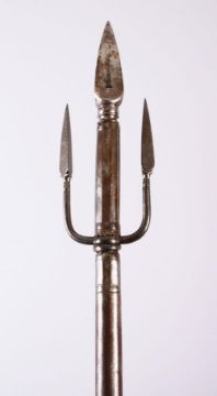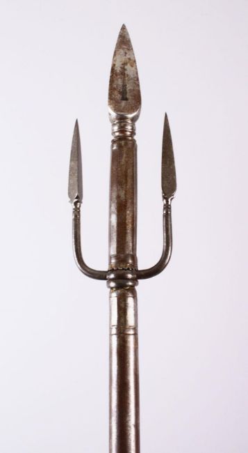 A FINE INDIAN STEEL TRIDENT SPEAR, 132cm.