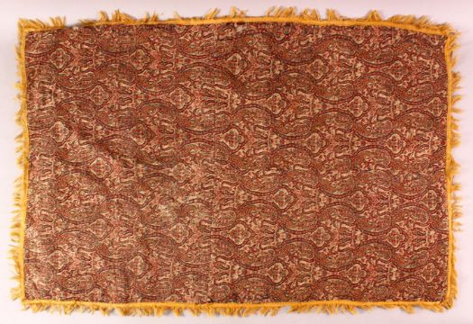 A 19TH CENTURY KASHMIR SHAWL FRAGMENT, with tassel borders, 87cm x 60cm