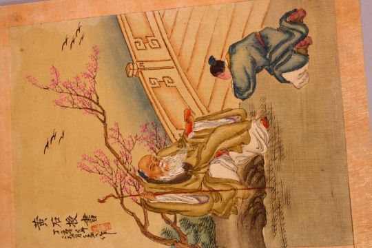 A COLLECTION OF FIVE CHINESE PAINTINGS ON PAPER, depicting scholars, birds, and a figure on a mule, 25.5cm x 19.5cm.