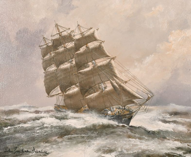32. John Bentham Dinsdale (1927-2008) British, 'Flying Cloud' a clipper at full sail, oil on canvas, signed, 10" x 12" (25 x 30 cm)