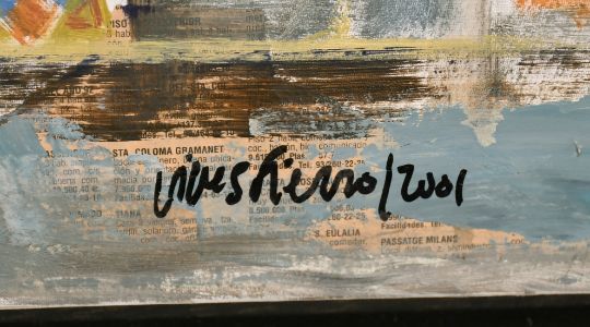 Attributed to Antonio Vives Fierro (b. 1940), Spanish, 'Columna Rosa', mixed media, indistinctly signed, 26" x 32" (66 x 81 cm).
