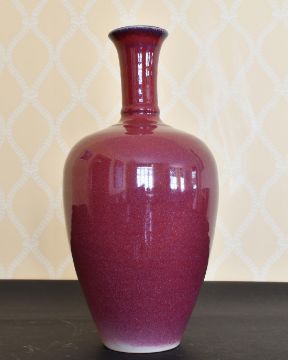 A LARGE CHINESE PINK MOTTLED VASE. 16ins high.