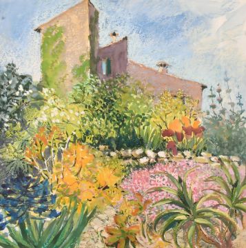 Sally Scott (b. 1939) A Pair of pastel and mixed media drawings, 'A Continental View' & 'Arboras Garden', signed, each 15" x 15" (38 x 38 cm). (2).
