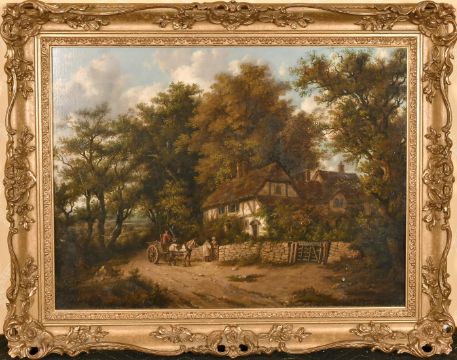 John Mayle Whichelo (1784-1865) British, A view of a cottage amongst trees, oil on canvas, signed, 18" x 24" (46 x 61 cm).