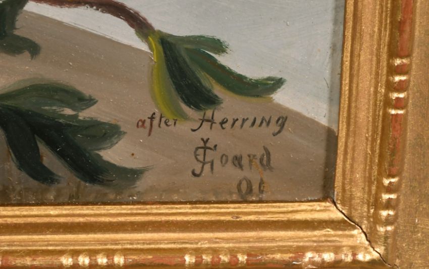 After Herring, 'Horses Watering at the Trough', oil on board, signed, 21" x 30".